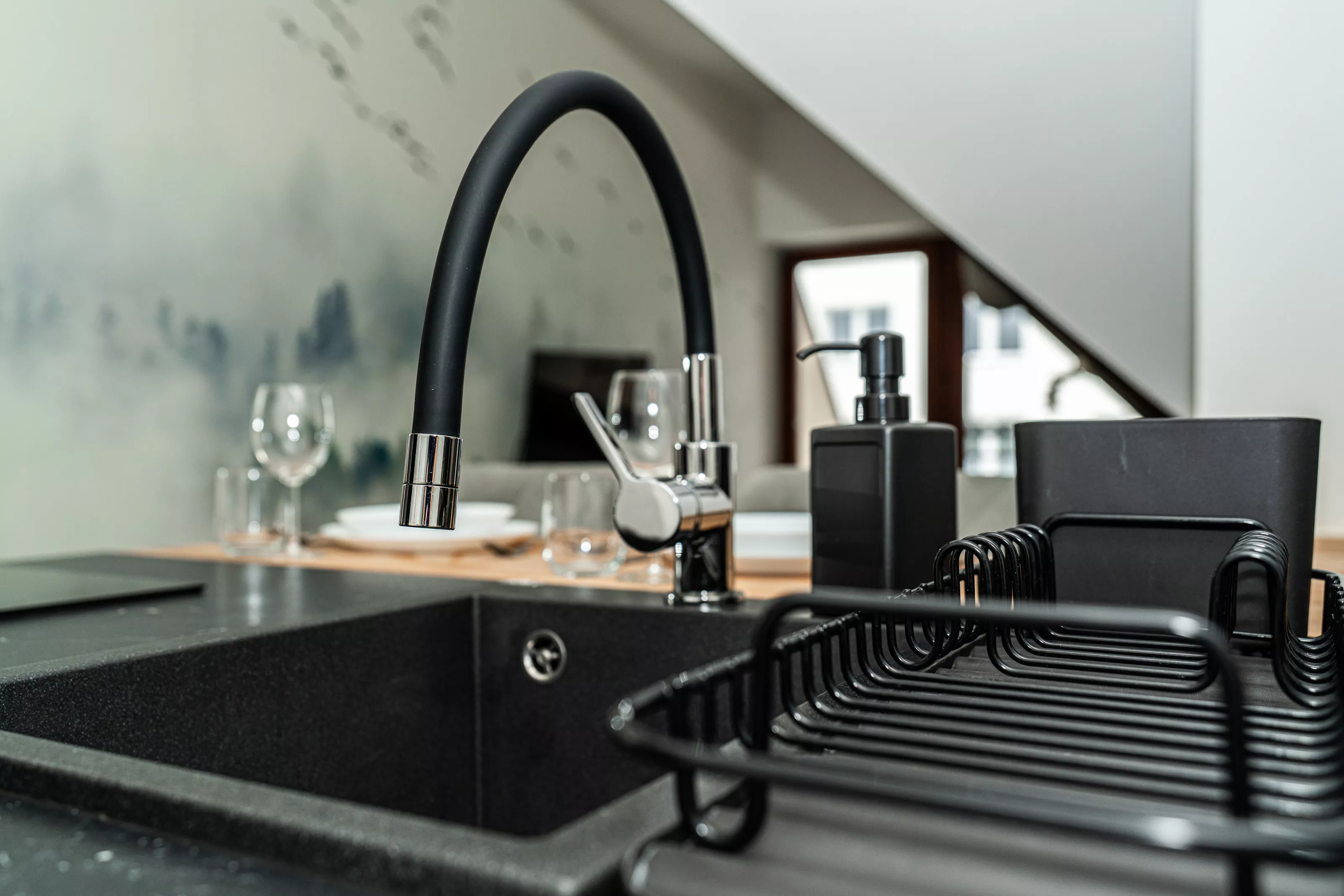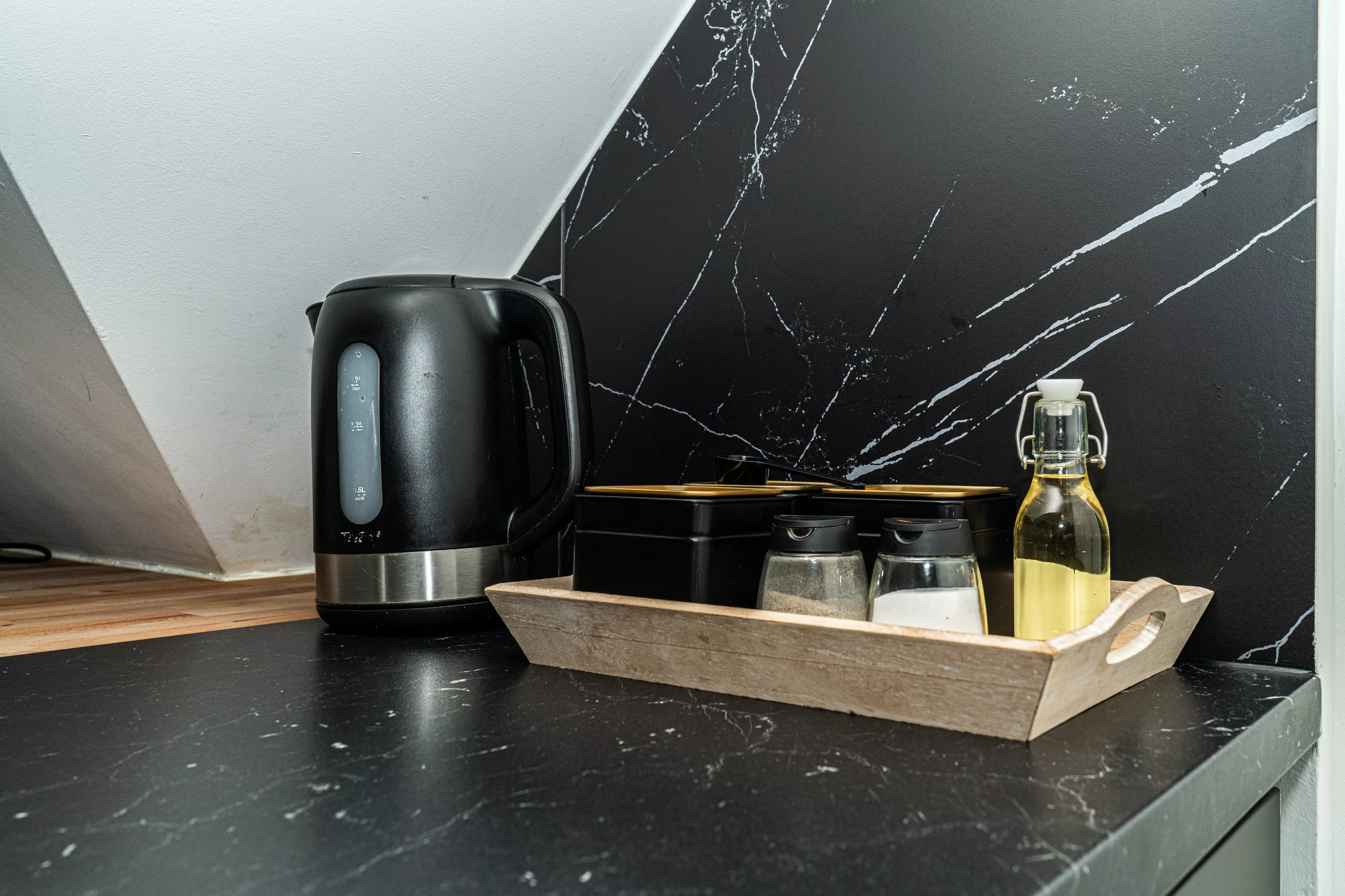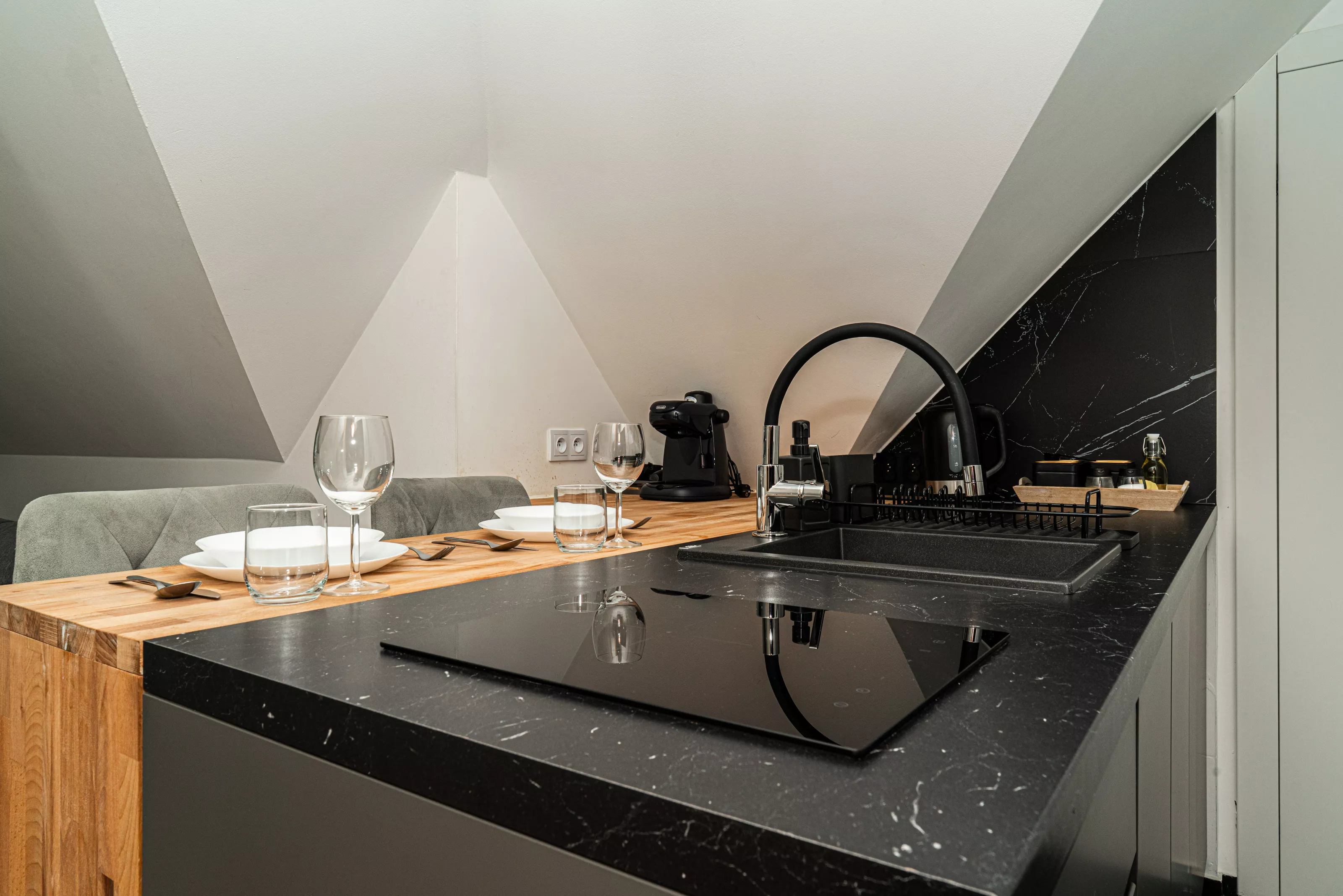 Apartament 4 osobowy blisko dworca PKP PKS. Sypialnia z jednym łóżkiem dwuosobowym oraz rozkładana sofa w salonie. Wygodna kuchnia z małym salonem.