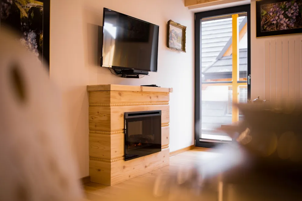 Cieplutki, przytulny, komfortowy, zaopatrzony we wszystko co potrzebne, z widokiem z dwóch dużych, dźwiękoszczelnych okien, oraz tarasu na Giewont, w bardzo dobrej lokalizacji Zakopanego, taki to apartament.